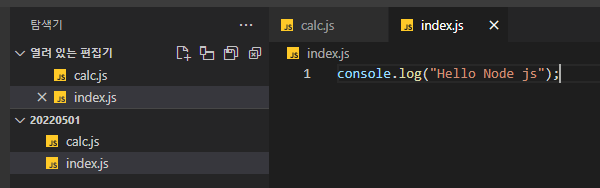 이번에는 index.js말고 다른 js 파일을 만들어 index.js에서 사용해보자. calc.js를 만들고(index.js와 같은 경로) 그 안에 간단한 계산 기능 함수를 만든다.
