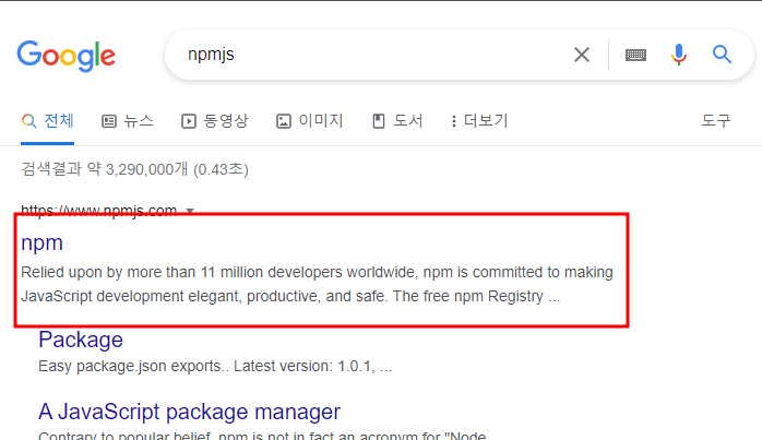 package는 누군가 따로 만들어 놓은 Node.js 모듈을 의미한다. 이 패키지를 npm을 이용하여 모듈들을 내려받을 수 있다.