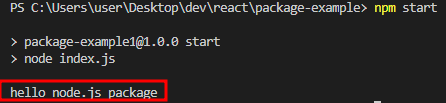 이 코드는 start를 내가 입력하면 자동으로 node index.js 명령어가 실행된다. 텍스트 대치 기능이라 생각하면 쉽겠다.