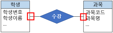 - 다대다(N:N) 관계 : 개체 집합 A의 개체 여러 개와 개체 집합 Y의 개체 여러 개가 서로 대응 관계.