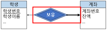 - 관계 집합의 속성 : 두 개체의 집합 관계에서 생성되는 값을 저장하는 속성