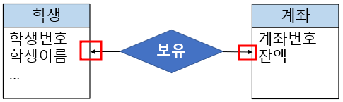 - 점선 : 관계 집합의 속성들을 관계 집합에 연결