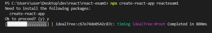 npx create-react-app reactexam1