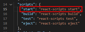 package.json 파일을 열어보면 전 시간에 배웠던 scripts가 나온다. 이 중에 start로 프로젝트를 실행해보자.
