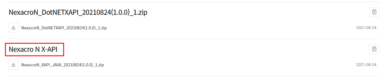 대메뉴 Product > Nexacro N > Download > Server [API,XENI]메뉴를 타고 들어가면 있다.