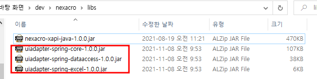 그리고 맨 위에 있는 nexacro-xapi-java-1.0.0.jar 파일은 기술지원센터에서 따로 받아야된다. 저거 없으니까 설정할 때 에러남;