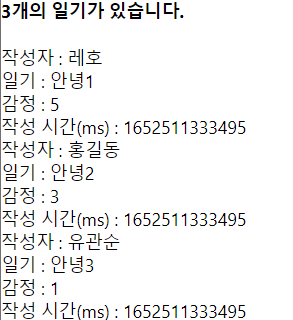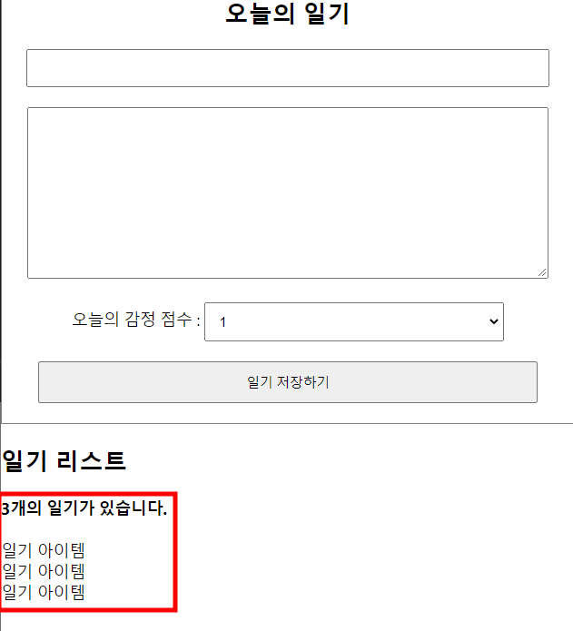 일단 바로 일기를 저장하고 배열을 렌더링 하는 코드를 작성하면 이해하기 어려울 수 있기 때문에 임시 배열로 렌더링을 해보자.