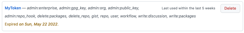 뭔가 token이 만료된 거 같아 github 설정에 들어가서 보니까 빙고