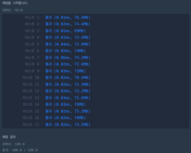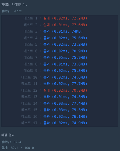 이 상태로 뿌듯해하며 코드를 제출했더니 테스트 케이스 3개가 실패했다.