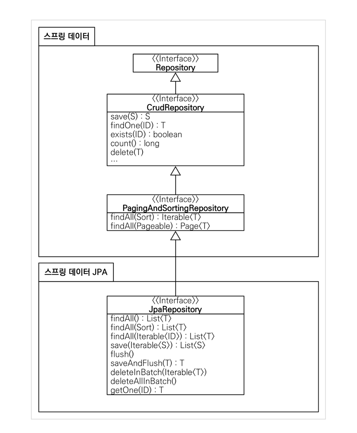 - JpaRepository 인터페이스 : 공통 CRUD 제공