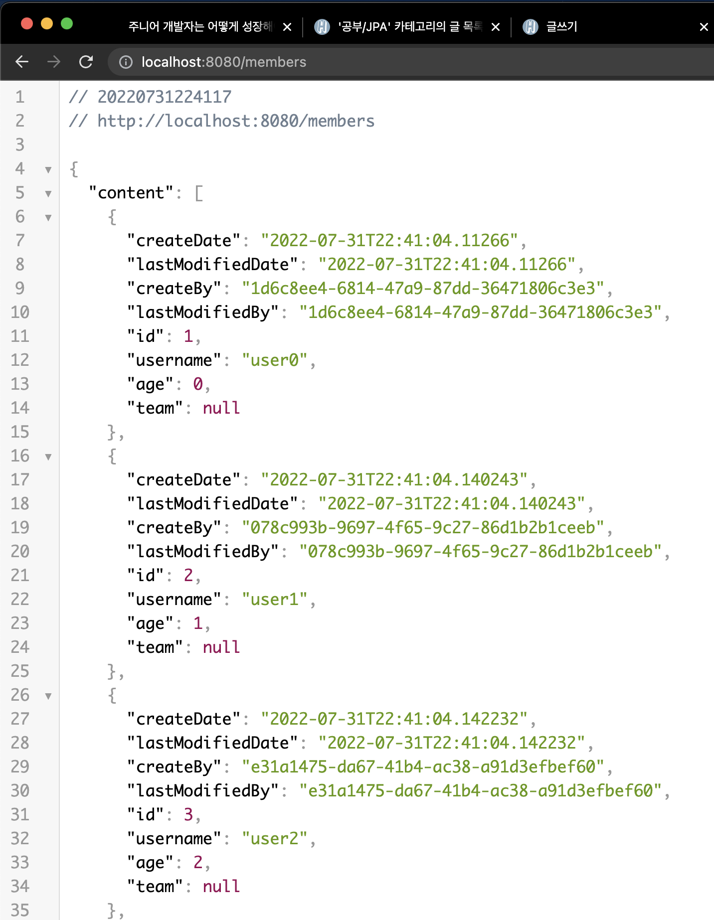 더 놀라운 기능은 page=값 뒤에 &size=값을 입력하면 데이터가 출력되는 갯수까지 지정할 수 있다.