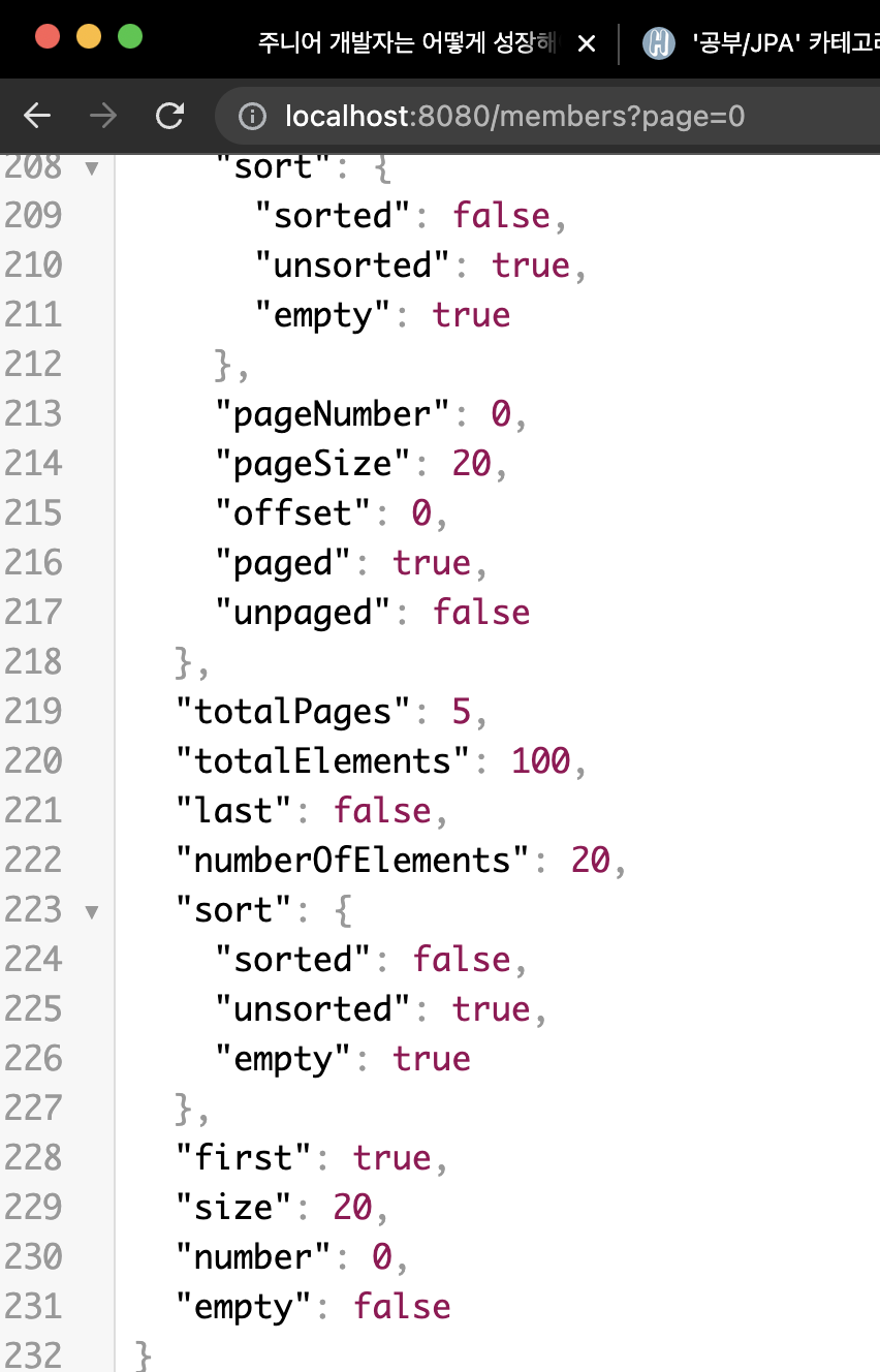 데이터를 알아서 20개까지만 가져와서 데이터를 출력한다. page의 값을 1 로주면 21~40까지의 데이터를 출력한다.