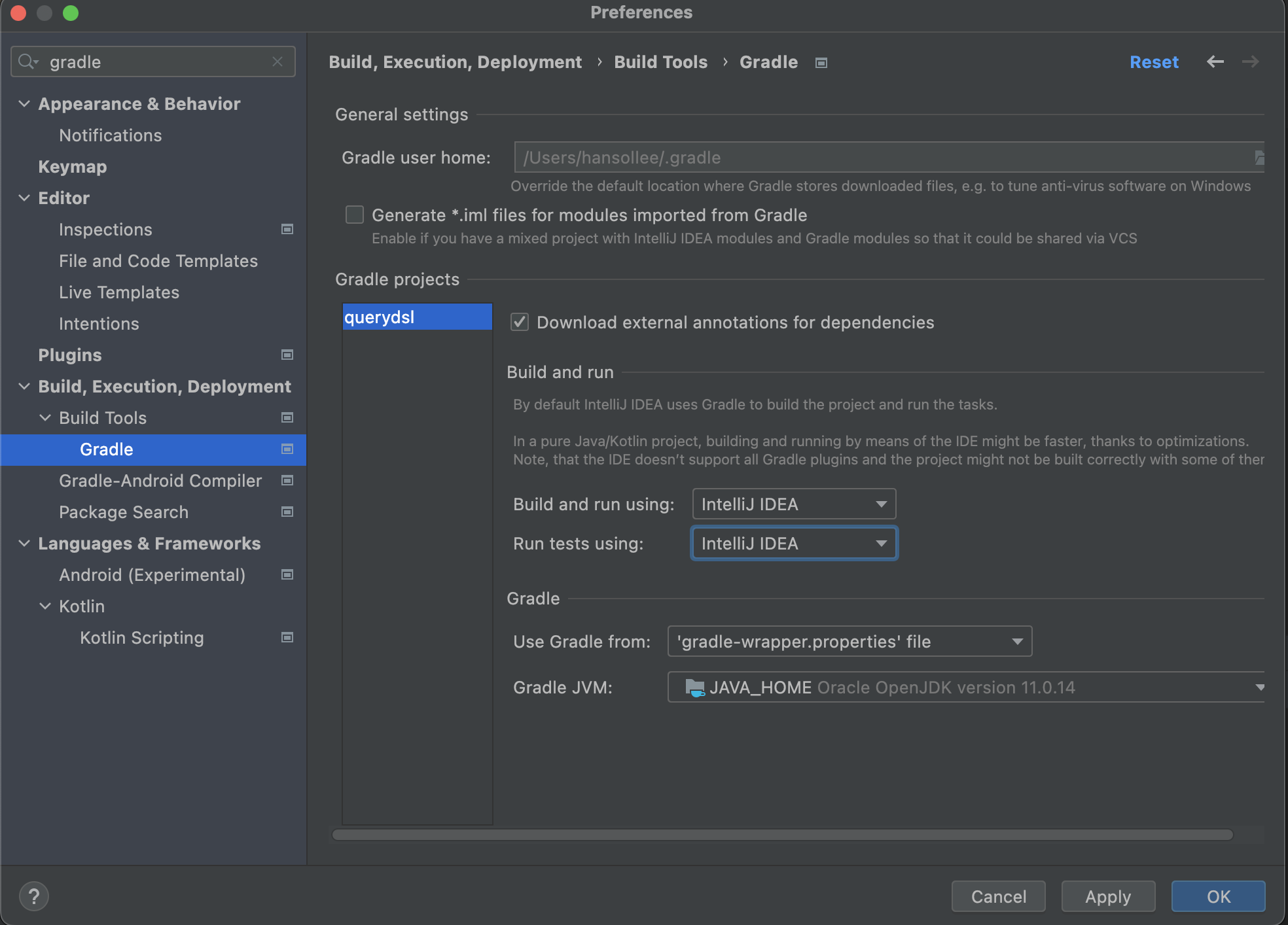 - Build and run 설정 - IntelliJ IDEA로 변경