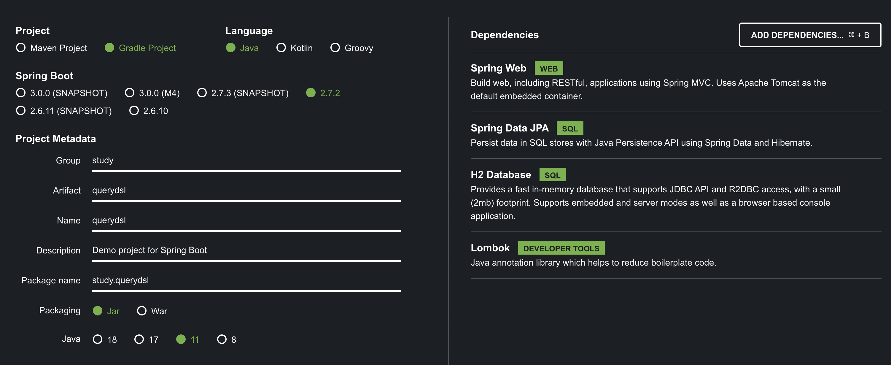 프로젝트 환경 설정(springboot 2.7.2 기준)