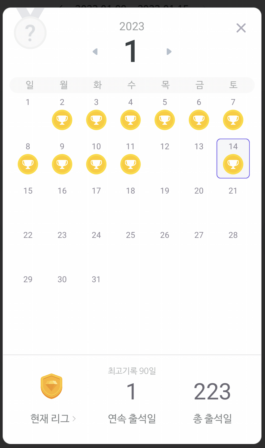 사실 맨 처음에는 그냥 좀 신기할 뿐 재미는 그닥 없었다. 워낙 영어 단어도 잘 몰라 50문제 중에 모르는 문제가 45개일 만큼이라 처음엔 진도가 제대로 안 나가고 시간도 되게 오래걸렸다. 그러다 5월쯤부터 재미를 붙인 거 같다. 리그 올라가고 싶어서 하루에 150개 ~ 250개를 하기도 했다. 그러다가 일이 바빠져서 야근 및 주말 출근에 쪄들어 가는 시점부터,,, 슬슬 놓아버렸구나 나,,,,