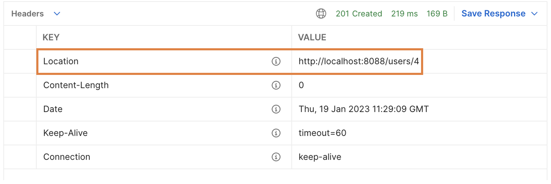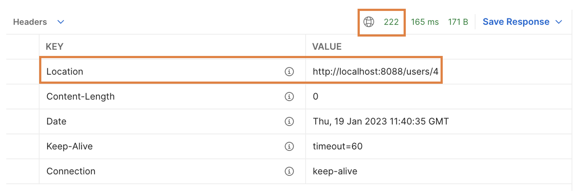 header 정보에 Location 값이 아까 Controller에서 추가한 코드의 값이 저장되어 있는 걸 확인할 수 있다. 관련 된 코드는 아래와 같다.