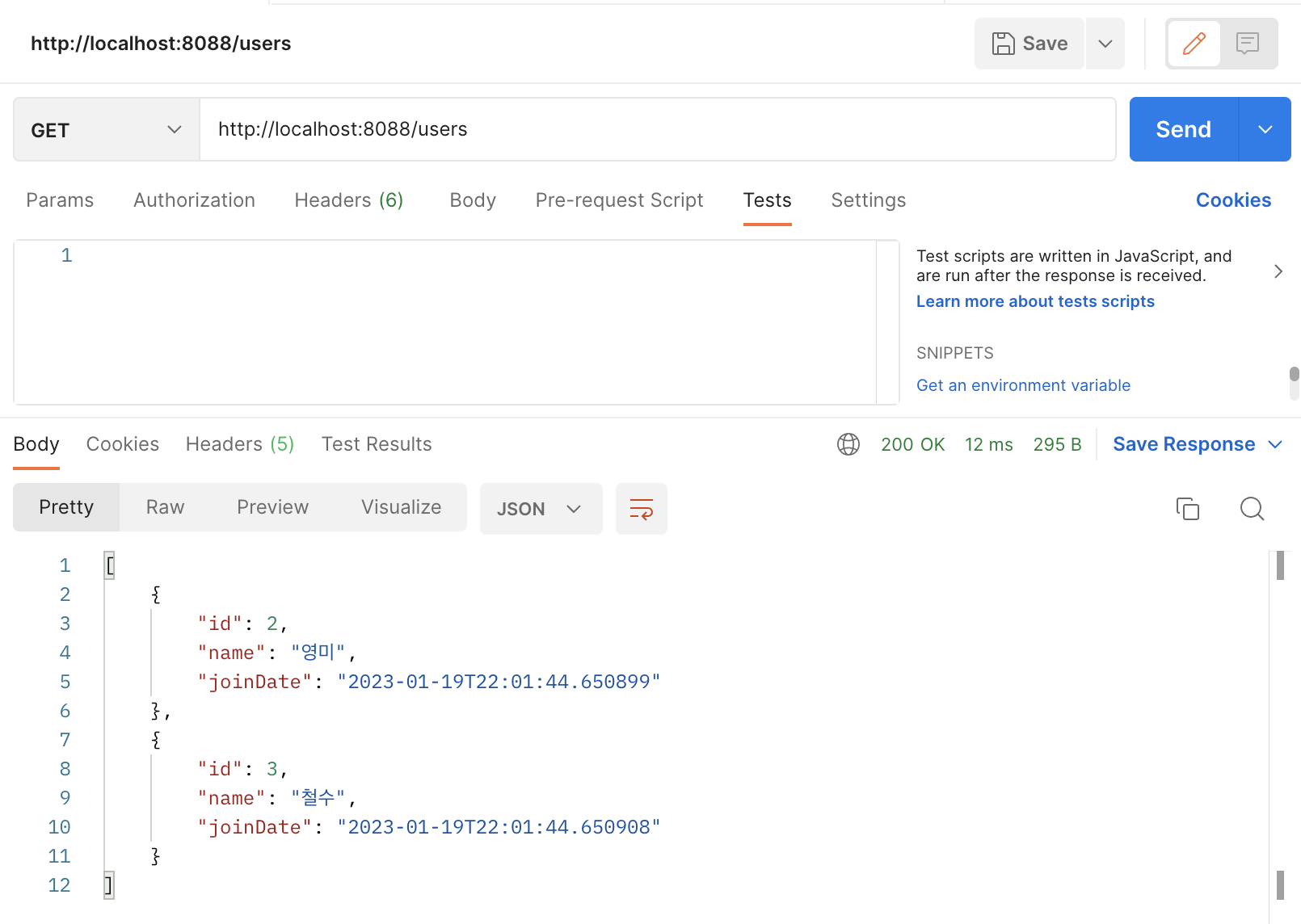 - 서버 재실행 후 포스트맨에서 확인