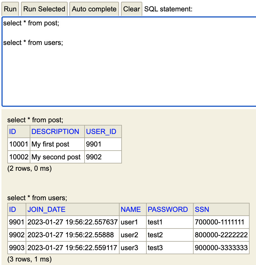 나는 더미 데이터에 9901 사용자 게시글을 하나만 insert해서 post 한 개 데이터만 보인다.