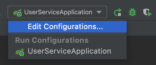 우측 상단에 UserServiceApplication-2를 선택하면 플레이버튼이 활성화되는 걸 볼 수 있다.
