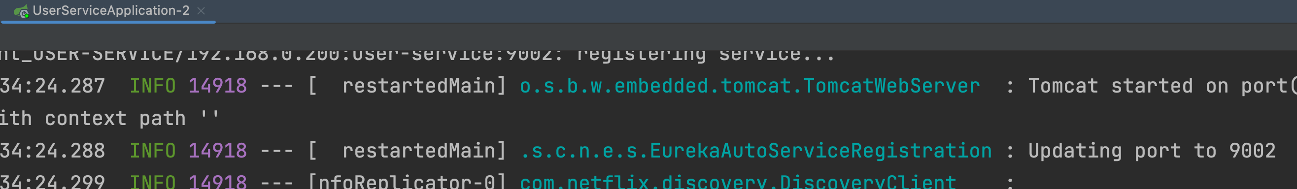 아까 봤었던 오류이다; 9001 포트를 이미 사용 중이라고 뜨는데 UserServiceApplication과 UserServiceApplication-2가 동일한 포트를 사용하고 있기 때문이다. 그래서 UserServiceApplication-2 포트를 변경해줘야 한다.