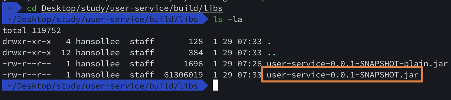 경로 주의!! user-service 폴더에서 입력해야 함