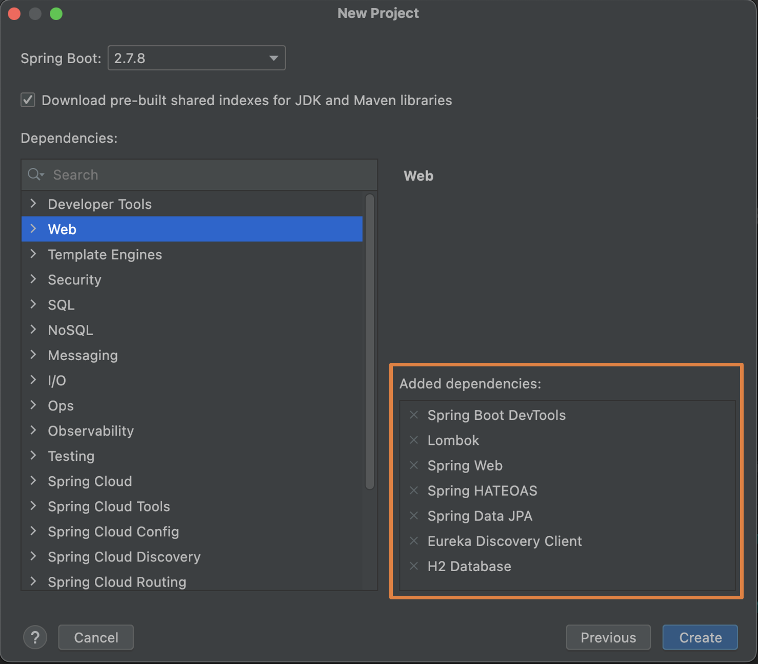 그리고 Dependencies도 강의에는 4개만 추가했다.