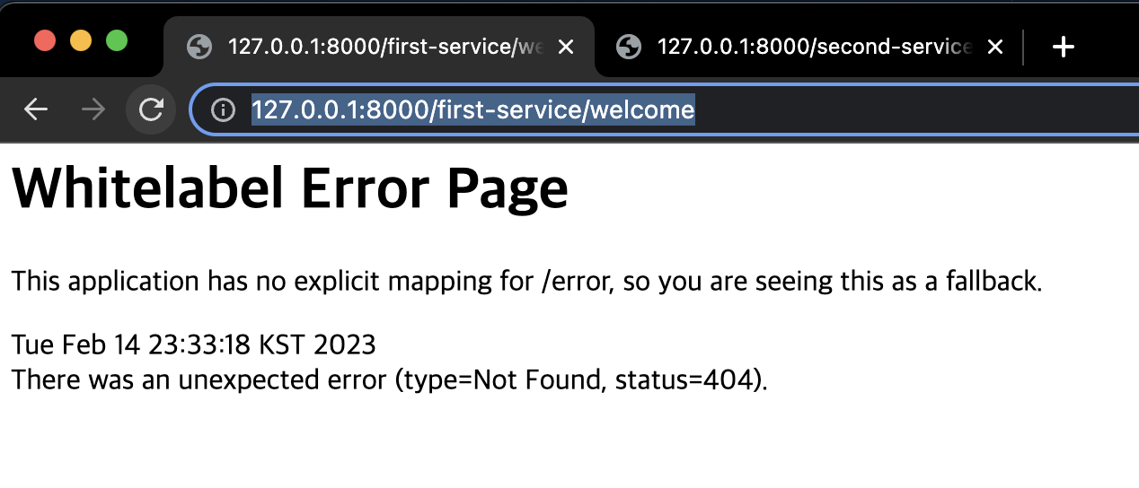 크롬에서 first-service와 second-service 주소를 띄워보자.