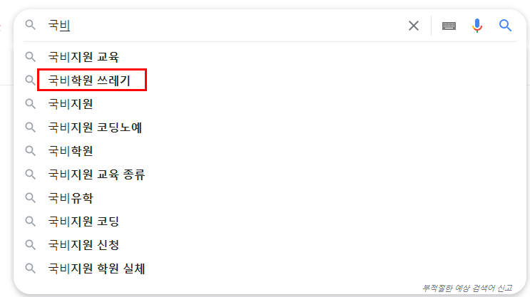 갓구글에 "국비"라는 단어를 검색하면 자동 완성(?) 기능에 "쓰레기"라는 단어를 찾아볼 수 있다.