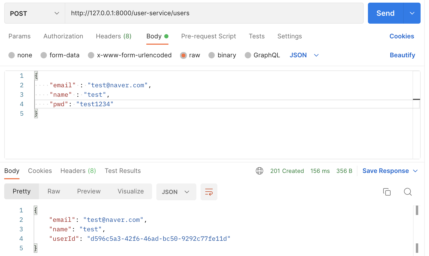 POST Method로 사용자를 하나 생성 후