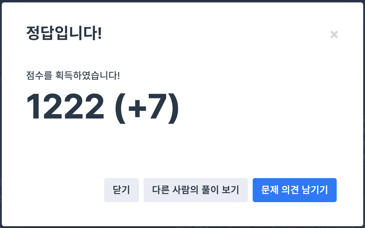 약간 어려울 수 있는 난이도의 문제라고 생각한다.일단 여태 풀었던 문제와 다르게 변수 선언을 많이해서 푸는 과정에서도 '잘 풀고 있는게 맞나'하는 생각이 계속 들었다. 일단 변수 선언을 가득하고나면 이중 for문도 아니고 for문 하나로 문제를 풀이할 수 있다. 그것 외엔 딱히 어려울 게 없는 문제..! 나와 내 코드를 믿는게 제일 어려운 문제였던거 같다;;