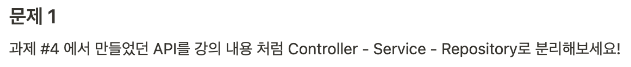 과제 #4 에서 만들었던 API를 분리해보며, Controller - Service - Repository 계층에 익숙해져 봅시다! 👍