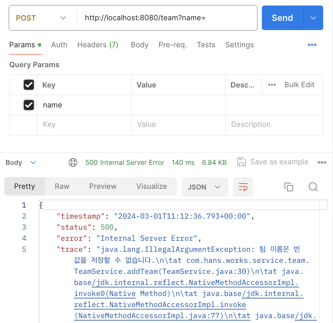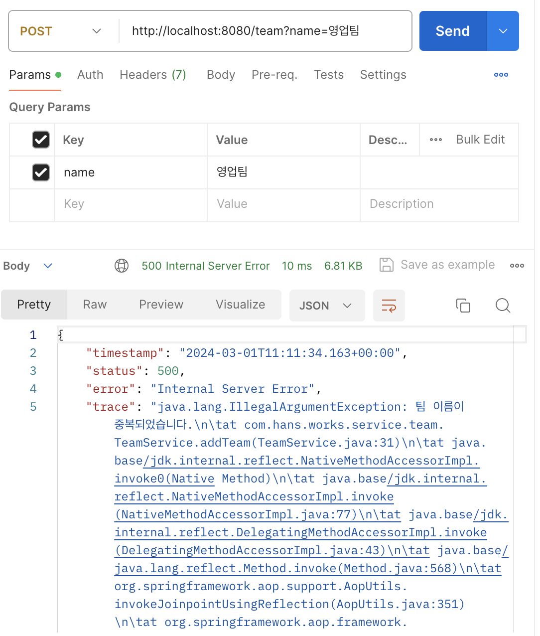 if(isDuplicate) throw new IllegalArgumentException("팀 이름이 중복되었습니다.");