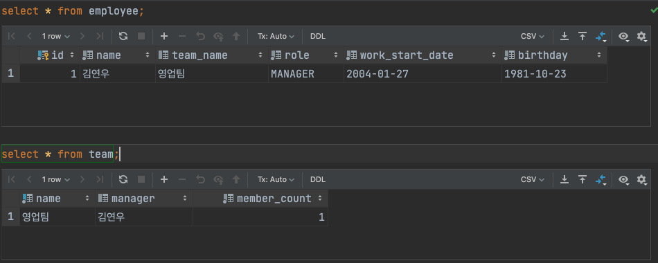 팀에 팀장은 바뀔 수 있는 존재니까 기존 팀에 MANAGER가 있다고 새로운 팀장을 저장못하면 말이 안되니 지금 저장 형태는 맞다고 생각된다. 다만 새로운 MANAGER가 등록이 됐을 때 기존 MANAGER였던 직원의 역할을 MEMBER로 변경해주자.