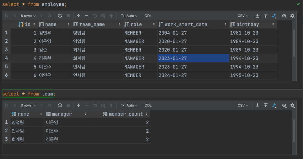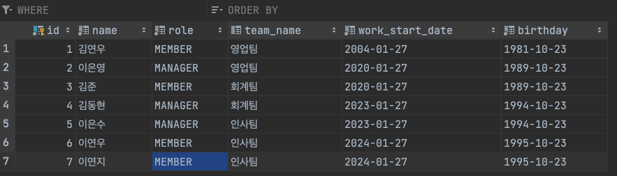 employee 기존 데이터 삭제 후 다시 처음부터 넣어줬다.