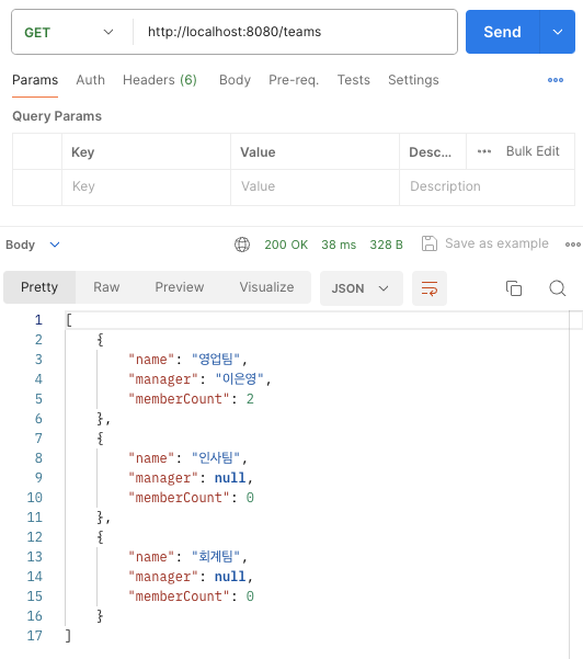 - 모든 팀의 정보를 한 번에 조회함