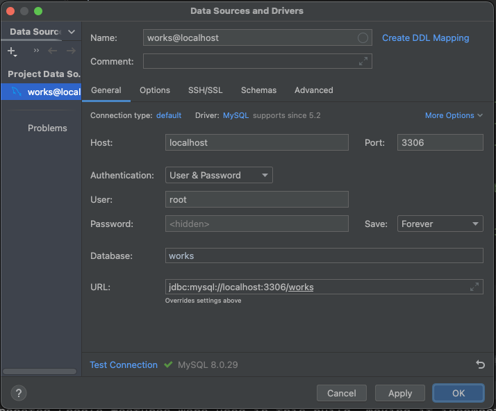 url: "jdbc:mysql://localhost/works"