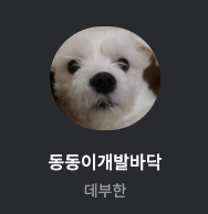 프로필 사진에 있는 강아지는 우리집 강아지 동동이다. 그래서 블로그 이름도 동동이가 들어간 이름으로 짓고 싶어서 또 대충 생각나는 대로 지었다.