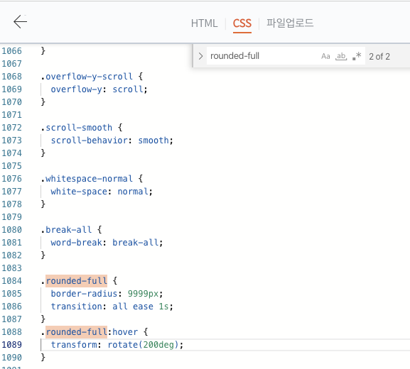 아주 쉽게 rounded-full 이란 CSS를 찾았다!