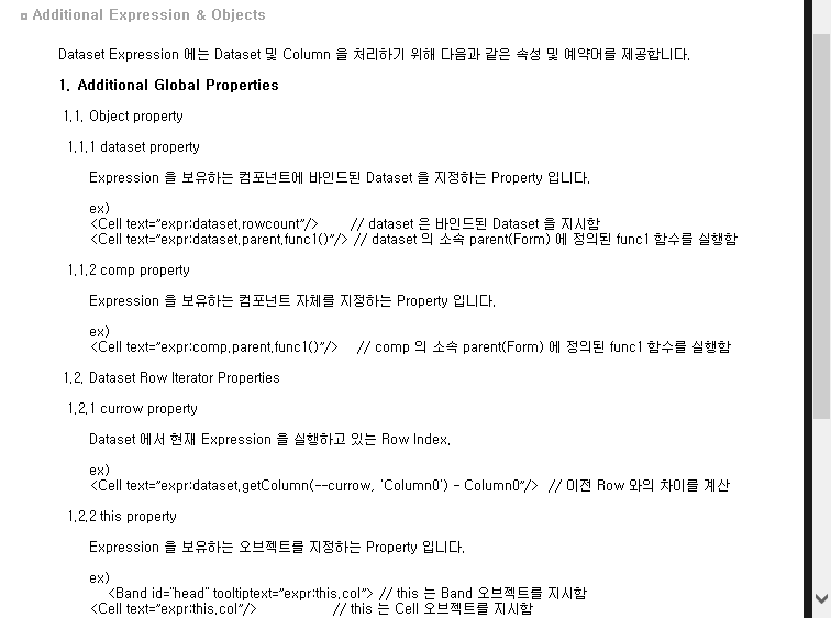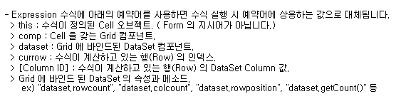 expr 도움말은 Components > Component > Grid > Objects > GridCellControl에 있다(찾기 겁나 힘듦).