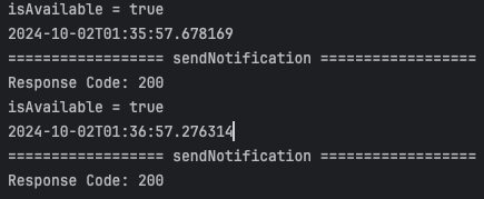스레드 주기를 1분으로 설정하고 테스트해보면 잘 돌아가는 걸 볼 수 있다.