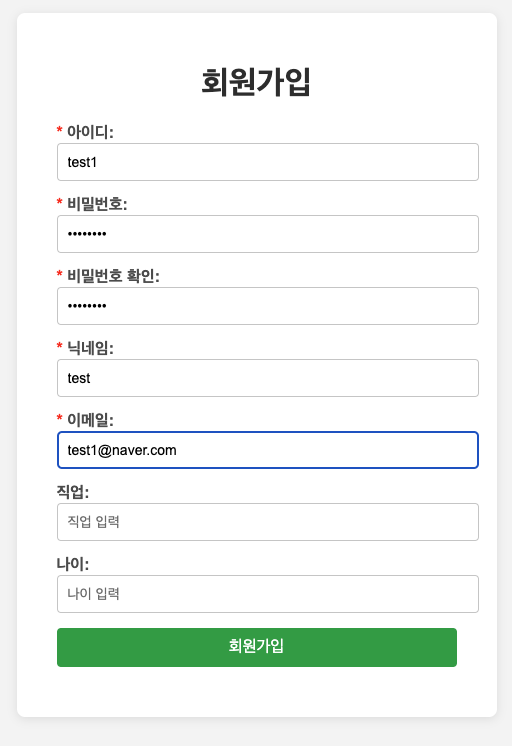 사실 게시글 제목은 회원가입 기능-2지만 더 다양한 걸 한 번에 쭉 해볼 예정이다.