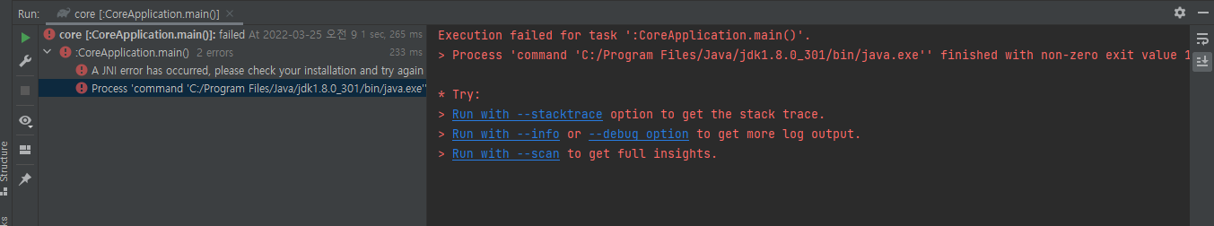 Execution failed for task ':CoreApplication.main()'.