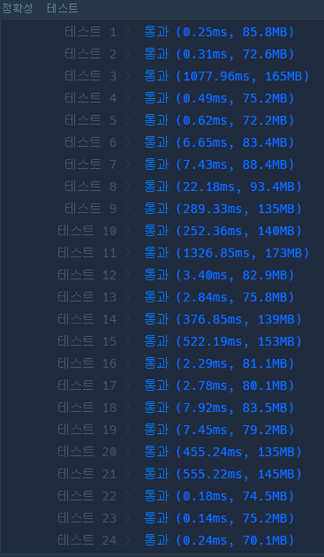 조금 더 깔끔해진 것 같기도하고 한눈에 들어오지 않는 것 같기도 하다....!!! 둘 다 돌려보니 속도는 비슷한 것 같다. 어떤 코드가 더 나은지는 모르겠지만 기존 코드를 List<Map<>> 형태로 바꾸면서 Map에 대해 좀 더 공부를 한 것 같다.