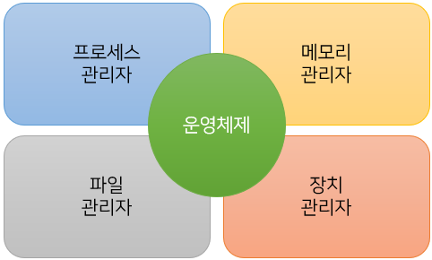 - 즉, 응용 프로그램들의 실행을 위해 자원들이 적절히 활용되도록 제어하고 관리하는 역할