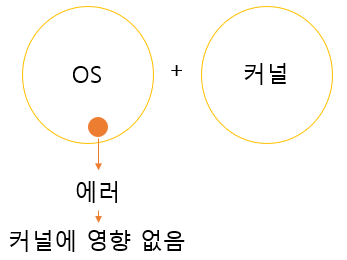 - 단점 : 모든 요소가 커널 내부에 존재하기 때문에 하나의 요소에서라도 오류가 발생하면 시스템 전체에 장애를 일으킴.