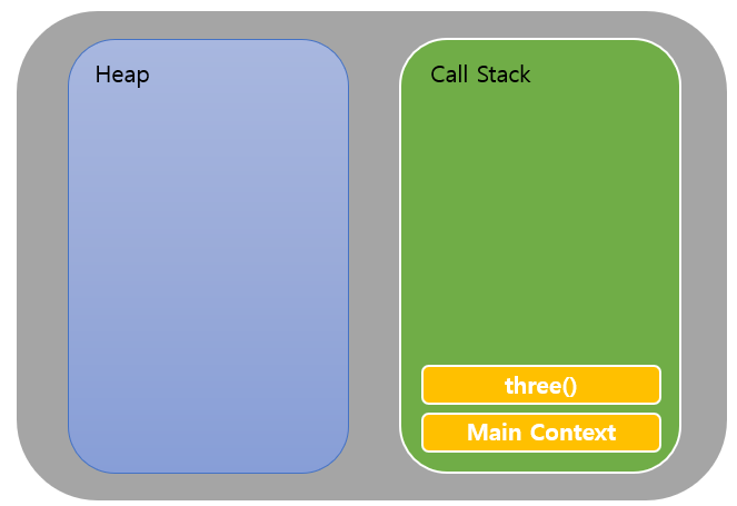 그리고 three() 메서드가 호출되는 순간에 Call Statck에는 three()가 적재된다.