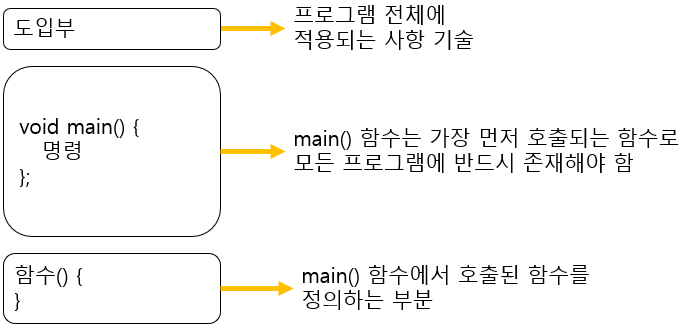 - C 프로그램은 반드시 하나 이상의 main() 함수를 포함