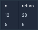 정수 n을 입력받아 n의 약수를 모두 더한 값을 리턴하는 함수, solution을 완성해주세요. 제한 사항 n은 0 이상 3000이하인 정수입니다. 입출력 예 n return 12 28 5 6 입출력 예 설명 입출력 예 #1 12의 약수
