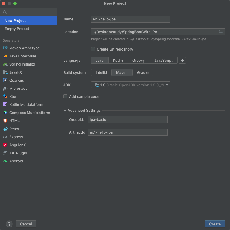 JPA 시작하기 - Hello JPA 시작하기 (프로젝트 생성 및 개발)