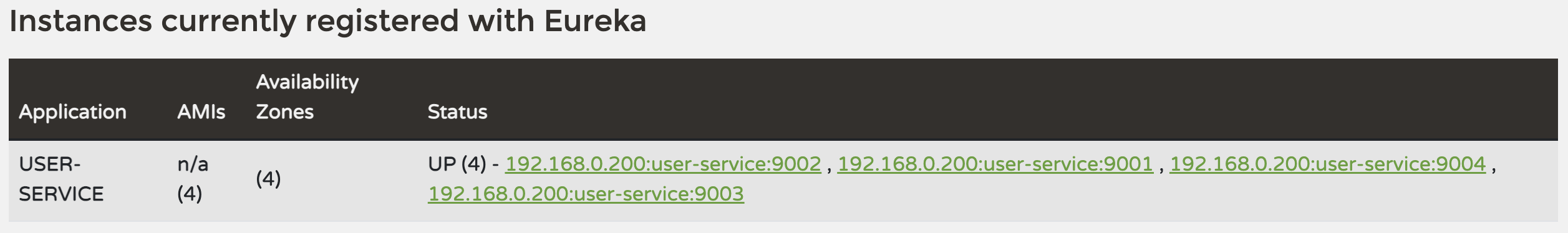 Eureka 대시보드로 접속한다. User Service 관련 두 개의 정보가 보인다.